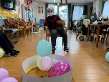 風船で遊び、そして、風船に遊ばれていました(*^-^*)