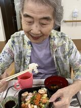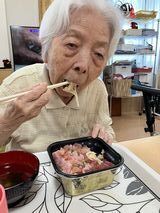 海鮮丼が届き目の前にすると「美味しそーう」「えー食べられるの?」と目が輝いておりました。