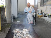 施設長が火をおこすところから始まり、じっくりさつまいもを焼きました。