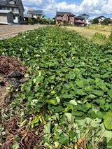 施設の近くにある畑ですが見て下さいこの緑の絨毯のような一面を!こちら夏前に植えたサツマイモがついに収穫の時期になりました。