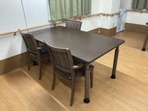 多様な入居者様のニーズに応えられるよう、高さ調整のできるテーブルも準備いたしました。