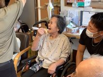 ご家族と一緒に特製おにぎり弁当を召し上がられ、「美味しいね」とニコニコとお食事をして下さっていました。