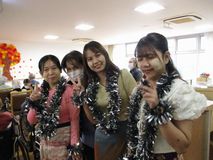 ミャンマー出身の3人はお化粧や飾りでいつもと違う雰囲気でとてもきれいでした。