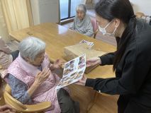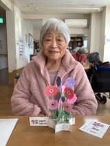 思い出の写真を貼った色紙のプレゼントに驚かれていました。