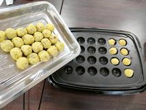 何か面白いものが出来ないかなと試しにタコ焼き機で「いももち」らしき物を作ってみました。