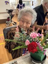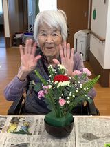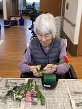 「わぁ!すごい綺麗なお花ねぇ。」とニコニコされながら花を手に取り、思い思いに生けて下さっています。