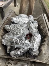 昔なじみの地域の方がボランティアで焼き芋を作って下さりその材料となったさつま芋は、小規模多機能ホームふれあい三島二日町さんからいただいたものです。
