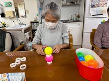 ボールの間に輪っかをのせて、ボールをそーっと載せたら慎重に手を放す。心が動けば体が動く。