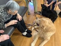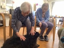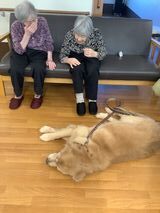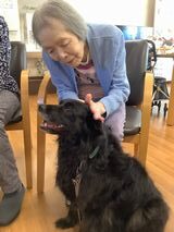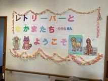 大型犬との触れ合いでは足元にくる大きな犬を撫でたり、触ったりして癒されました。