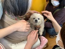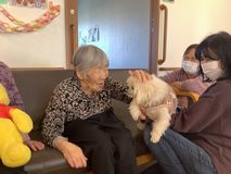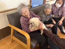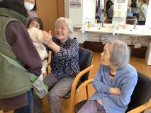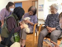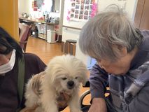 小型犬との触れ合いでは抱きしめたり膝の上に乗っけたりと体全体でワンちゃんたちと触れ合いました。