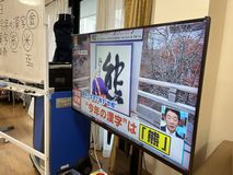 14時になり、テレビの前に集まる皆様。書く瞬間はドキドキです。
