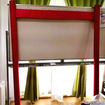 ②円柱をペンキで塗る。1m²方眼紙に巻かれていた紙(幅7㎝、高さ140㎝)のを使用しましたがホームセンターで買ったり、塩ビ管、2Lペットボトルの頭部分を切って重ねて新聞紙、色画用紙で固定して塗ってもいいと思います。