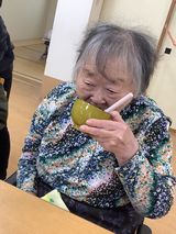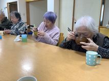 普段のおやつはお菓子なので、おしるこを見るや否や「わぁ~久々に食べる~」と嬉しそうなご様子。もくもくと召し上がる方もいれば、「美味しいね」と会話を楽しまれながら味わう方もおり、それぞれご自身のペースで召し上がられておりました。