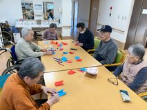 新しい年を迎え早くも節分…、皆様も「早いねぇ」と話されながら、折り紙で鬼を作っていただき、それぞれの顔を書いていただきました。