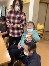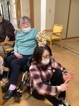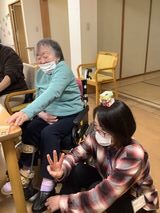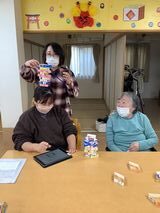職員もついついやりたくなってしまい、必死に積み上げる横で「怖いよ~」と笑顔で おっしゃるK様。