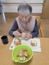 ケチャップライスも作り、一人ずつハンバーグ二つ召し上がり「おなかいっぱい」と笑顔で話される様子も見られました。