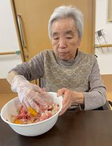 玉ねぎを切ったり、お肉をこねたりと皆様と協力し作りました。