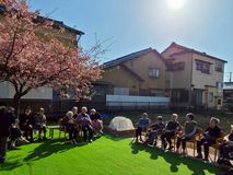 利用者様もお庭に出て、満開の桜を眺めながらお花見を楽しまれました。