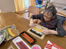 お好きな具材を入れて、恵方巻きなので太すぎてもOK!