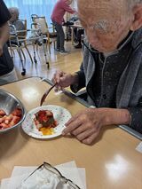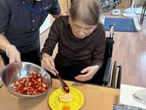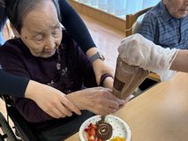 入居者様からは、「苺もロールケーキを美味しい」「久しぶりに食べたよ」