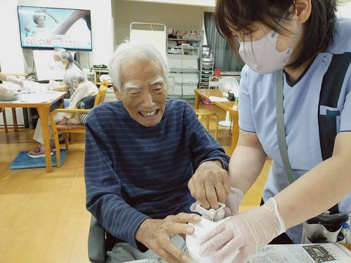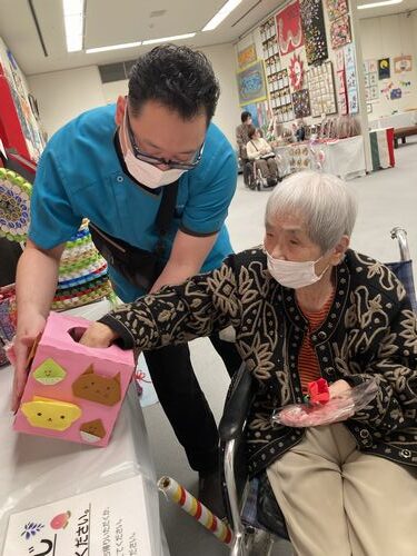 利用者様に敬老会の装飾を手