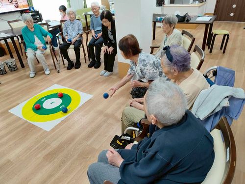 今日のレクリエーションはお手玉ダーツ!得