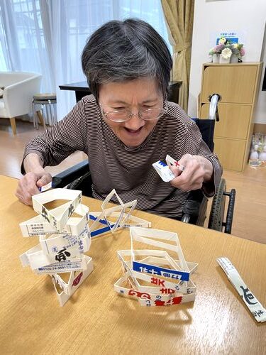 午後のレクリエーションに牛乳パックで作ら